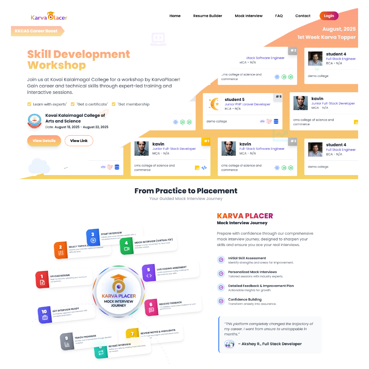 KarvaPlacer empowers students and professionals with AI-driven mock interviews, preparing them for real-world opportunities with confidence.